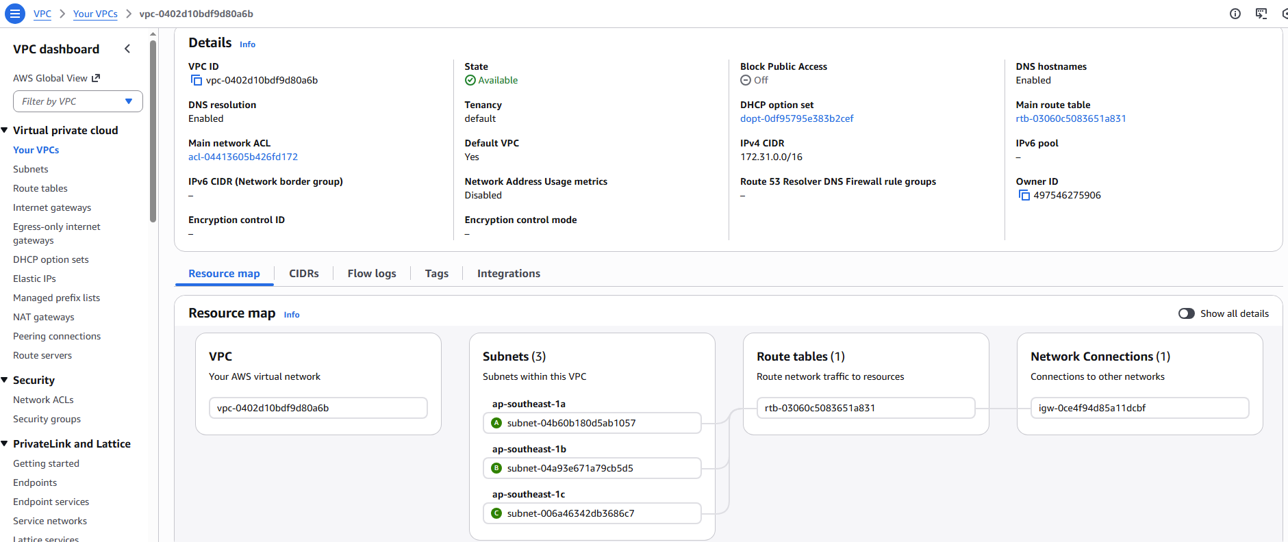 最终的 VPC 整体路由可以在 VPC 的 Resource map 中进行检查