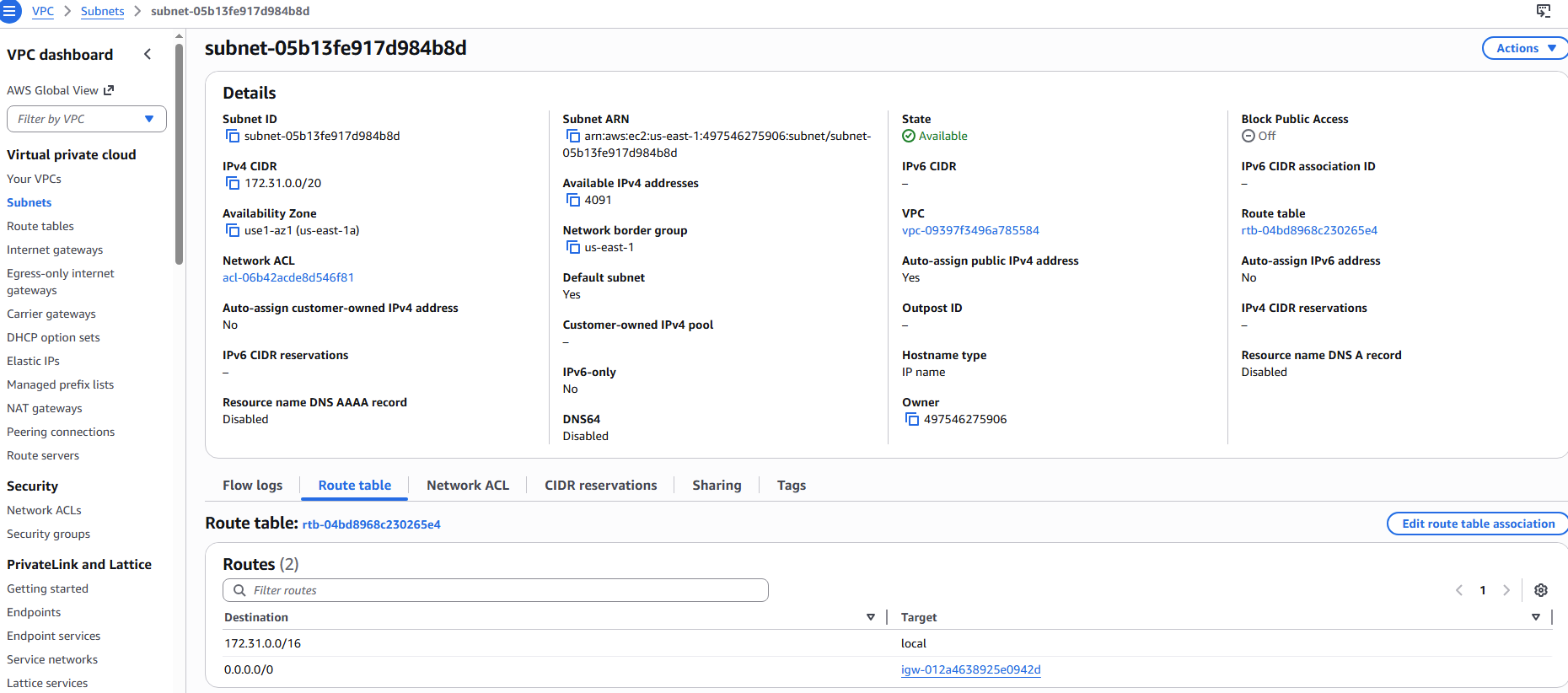 - 公有子网 (Public Subnet) 其路由表中默认路由(0.0.0.0/0)指向 互联网网关 (Internet Gateway, ID 格式通常为 igw-xxxxxx) 。由于它直接连接到互联网大门,且子网内的实例拥有公网 IP,因此外部用户可以主动访问它,它也可以直接访问外部。