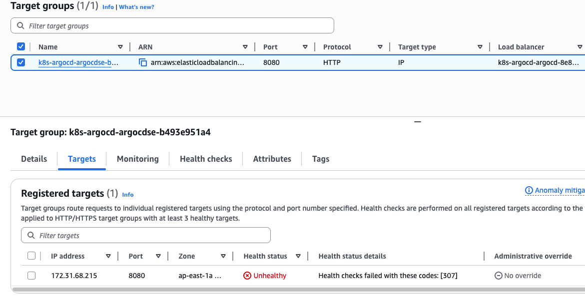 ArgoCD Pod 强制开启了 TLS (HTTPS),而 ALB 却在使用 HTTP 进行健康检查。会因为健康检查失败无法访问